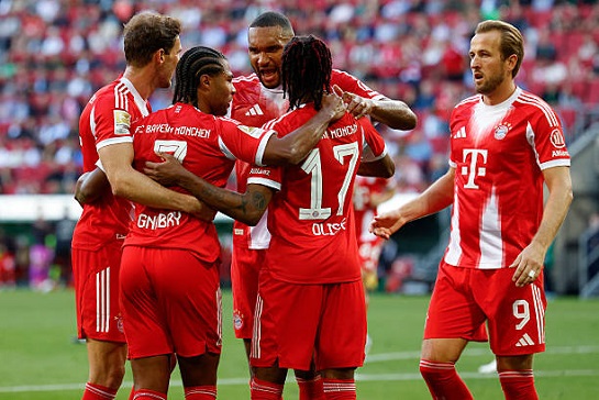 «Бавария» на старте сезона смотрится просто прелестно. Но в дерби подопечные Компани испытали определенные проблемы. Начался матч против «Аугсбурга» удачно, уже на первой минуте могли забивать гости, но там Горецка получил мяч, прилетевший к нему. Он отдал на Кейна, Харри из-за штрафной набросил на линию вратарской, Гнабри головой забил под левую стойку. Мог и Лаймер отметиться взятием ворот, но все-таки результативное действие осталось за Сержом – 1:0 в пользу «Баварии», но Диас не отличился из убойной позиции, хотя Олисе все там для него сделал. Так или иначе, «красные» все равно открыли счет. Горецка получил мяч, прилетевший к нему, отдал на Кейна, Харри из-за штрафной набросил на линию вратарской, Гнабри головой забил под левую стойку. Мог и Лаймер отметиться взятием ворот, но все-таки результативное действие осталось за Сержом – 1:0 в пользу «Баварии» на 28-й минуте. В компенсированное к первому тайму время удалось удвоить преимущество, Олисе со стороны правого фланга отправил в чужую штрафную Лаймера, тот прострелил на линию вратарской, Диас в падении отправил мяч в левый нижний угол мимо Дамена – 2:0 на табло. И вторая половина встречи стартовала под диктовку мюнхенцев. На 48-й минуте Дамен вынес мяч прямо на Диаса, который головой сбросил мяч на Кейна. Англичанин переправил к Олисе, Майкл влетел в чужую штрафную, справился с соперником, после чего уже разобрался и с голкипером – 3:0. Но такой счет словно пробудил «Аугсбург». Гости стали действовать пассивнее, у них сильно снизился уровень показываемой игры. Это позволило андердогу дважды результативно ответить. Сначала Гаувелеув перехватил мяч, отдал на Саада. Передача пошла на Фелльхауэра, Робин оформил прострел, там Якич очутился, под правую штангу он отправил мяч – 3:1. Потом все тот же Якич сыграл уже на Кемюра, Нойер вышел из ворот и пропустил в правый нижний угол, т.к. толком не видел, куда летит «снаряд» из-за защитников – 3:2. Плохо сыграла «Бавария» во втором тайме, но все еще чувствуется запас, с которым порой действует чемпион. У Вагнера еще все омрачилось тем, что Вольф и Яннулис получили повреждения. Мюнхенцы пока идут без потерь.