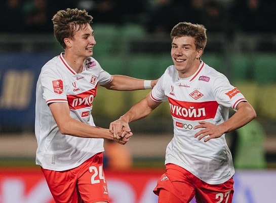 ”Спартак” всё-таки выиграл свой квартет на групповой стадии Кубка России. Для завоевания итогового первого места красно-белым было необходимо обязательно в основное время побеждать махачкалинское “Динамо” в Каспийске, и команда Станковича, наконец-то отбывшего месячную дисквалификацию, добилась нужного результата. Правда, поначалу игра складывалась не по сценарию столичного клуба. В середине первого тайма динамовцы открыли счёт усилиями Мастури, реализовавшего выход 1 на 1 с Помазуном. Однако пропущенный мяч гостей не надломил, и они быстро исправили ситуацию благодаря классному результативному выстрелу Маркиньоса со штрафного. А уже второй сорокапятиминутке “Спартак” оформил нужный результат. Главными действующими лицами на поле у команды Станковича были молодые футболисты. Сначала Массалыга забил дебютный гол за красно-белых и вывел гостей вперёд, а чуть позже первый забитый мяч за столичный клуб себе в актив записал Дмитриев. В концовке матча у гостей была прекрасная возможность оформить итоговый разгром махачкалинцев, однако Заболотный не смог переиграть Волка ударом с одиннадцатиметровой отметки, после чего вратарь “Динамо” справился с добиваниями в исполнении юного Добродицкого и Мартинса. Команда Биджиева, в свою очередь, достаточно много времени провела в атаке, однако изменить ситуацию ей не удалось. Таким образом, “Спартак” обошёл клуб из Дагестана в борьбе за первое место в группе благодаря преимуществу в личных встречах. ![]() Фото - ФК Спартак Предыстория. Махачкалинское “Динамо” и “Спартак” в очном противостоянии определяли победителя группы C. Коллектив из Дагестана перед заключительным туром возглавлял квартет с тринадцатью набранными очками и на три балла опережал красно-белых. Следовательно, команде Биджиева для итогового первого места было достаточно не проиграть в основное время. В первом круге групповой стадии динамовцы победили в Москве в серии пенальти после ничейного результата 1:1 в основное время. Агаларов открыл счёт с пенальти под занавес основного времени второго тайма, однако спартаковцы благодаря результативному удару Литвинова на 5-й компенсированной минуте сумели заработать хотя бы одно очко по итогам той встречи. А уже в серии одиннадцатиметровых Зорин и Зобнин не смогли переиграть Волка, в то время как у махачкалинцев только Агаларов неудачно пробил с “точки”. К игре заключительного тура групповой стадии Кубка “Динамо” и “Спартак” подошли не в лучшем настроении. Махачкалинцы в 12-м туре чемпионата дома проиграли “Краснодару” со счётом 0:2. На протяжении большей части первого тайма у коллектива из Дагестана получалось затянуть краснодарцев в вязкую игру с минимальным количеством свободного пространства. Однако в концовке первой сорокапятиминутки “быки” нашли возможность взломать оборону динамовцев, что облегчило им задачу достижения нужного результата. У махачкалинцев, в свою очередь, продолжаются огромные проблемы с результативностью в чемпионате. В двенадцати играх команда Биджиева забила всего 5 мячей - самый низкий показатель в РПЛ. Для сравнения в пяти кубковых встречах “Динамо” забило 8 голов. Именно поэтому махачкалинцы идут лишь тринадцатыми в чемпионате. “Спартак”, в свою очередь, в прошлые выходные не смог дома обыграть “Ростов”, ограничивши