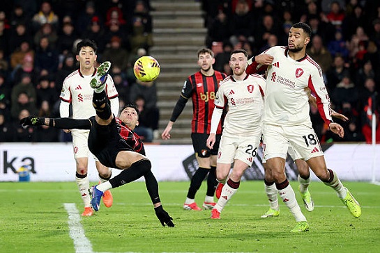 В игре 23-го тура АПЛ "Борнмут" нанёс поражение "Ливерпулю" - 3:2! Накануне матча легенда "красных" Стивен Джеррард обрушился с критикой на Арне Слота за постоянные жалобы голландца на низкие блоки соперников "Ливерпуля". Забегая вперёд, скажем, что на "Виталити Стэдиум" чемпион Англии опять наступил на те же грабли... В начале игры Вирц и Салах безуспешно пытались вскрыть эшелонированную оборону "вишен" через правый фланг. "Борнмут", сдержав стартовый натиск фаворита, начал больно колоть мерсисайдцев. Скотт в непростой ситуации укротил мяч в поле и выкатил сферу под удар Эванилсону, который не пожалел своего соотечественника Алиссона. Через шесть минут "вишни" ушли в отрыв, когда Хименес конвертировал в гол продольный пас Хилла. Слот ещё до перерыва убрал с поля провалившего матч Гомеса. "Красные" после непродолжительного замешательства вновь принялись накатывать волнами на ворота Петровича. Наградой для "Ливерпуля" стал гол в раздевалку Вирджила ван Дейка, откликнувшегося на подачу Собослаи с углового. Во втором тайме всё самое интересное команды оставили на десерт. На закате основного времени Собослаи сравнял счёт ударом со штрафного, заработанного юным Нгумоа. "Борнмут" активизировался и вырвал победу непосредственно перед финальным свистком. После аута Хилла расторопнее других у ворот Алиссона оказался Амин Адли! "Борнмут" лишь в третий раз в клубной истории обыграл "Ливерпуль". "Вишни" взлетели на 13-ю строчку таблицы АПЛ, догнав по набранным очкам "Брайтон". "Ливерпуль" по завершении 13-матчевой беспроигрышной серии рискует выпасть из квартета лидеров... ![]() Фото - Getty Images Предыстория. Субботнюю программу 23-го тура АПЛ закроет матч между "Борнмутом" и "Ливерпулем". Действующий чемпион Англии отправляется на "Виталити Стэдиум", хозяева которого только по большим праздникам отбирают очки у "красных". С Андони Ираолой у руля "вишни" и вовсе исключительно проигрывают "Ливерпулю" - шесть поражений с общий счётом 4:18. На старте сезона дубль Семеньо позволил "Борнмуту" отыграться на "Энфилде", однако поздние голы Кьезы и Салаха склонили чашу весов в сторону мерсисайдцев (4:2). Именно гол Семеньо в ворота "Тоттенхэма" (3:2) в прощальном матче ганца за клуб принёс "вишням" единственную победу в 14 последних играх во всех турнирах. Впрочем, даже после продажи своего лидера атака "Борнмута" не промолчала ни в кубковой встрече с "Ньюкаслом" (3:3, 6:7 пен.), ни в матче против "Брайтона" (1:1), победу в котором южане упустили уже в компенсированное время. Что до "Ливерпуля", то гости замыкают топ-4 как в АПЛ, так и в Лиге чемпионов. Команда Арне Слота постепенно выбирается из кризиса: после "нулей" с "Арсеналом" мерсисайдцы прошли дальше в Кубке Англии, оступились в матче с "Бёрнли" (1:1) и разгромили "Марсель" (3:0). Крупная победа на "Велодроме" была знаменательна не столько продлением беспроигрышной серии до 13 матчей, сколько возвращением опального Салаха. В лазарете "вишен" остаются Деннис, Солер, Акинмбони, Адамс, Брукс, Тавернье, Доук и Клюйверт. "Красные" помимо Конате недосчитались Леони, Брэдли, Байчетича, Кьезы и Исака. Ход матча. Главные тренеры обеих команды выполнили по одной замене в стартовых составах по сравнению с последними календарными играми. Единственное изменение в основе "Борнмута" носило вынужденный характер: Ираола выпустил с первых минут старожила "вишен" 