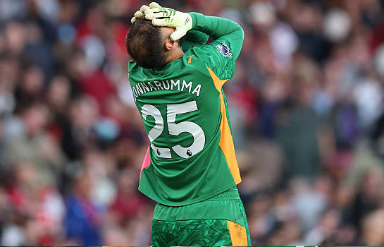 Нестандартную для «Манчестер Сити» игру увидели зрители на «Эмирейтс». «Горожане» поразили ворота «Арсенала» уже на девятой минуте, и этот быстрый гол, кажется, определил дальнейший ход поединка. В несвойственной ему манере «Сити» отдал полностью территорию и мяч сопернику, а сам засел в глухую оборону с редкими контрвыпадами. Тактика частично работала, поскольку «канониры» не могли при всем своем давлении создавать какие-то острые моменты на постоянной основе. Все «горожане» успешно перекрывали и ликвидировали. А по ходу второго тайма Хосеп Гвардиола только укреплял и укреплял оборонительные порядки, что тоже смотрелось странно для его команды. До поры это работало, но все же в компенсированное время атакующий напор «Арсенала» сыграл свою роль, и «канониры» сумели сравнять счет. В принципе, исход закономерен. ![]() Фото - Getty Images Предыстория. Обычно «Арсенал» и «Манчестер Сити» привычнее видеть рядом с вершиной турнирной таблицы. Даже в самом начале сезона. Но на этот раз старт обеим командам удался не идеальным образом. «Горожане» подошли к этой встрече на 12-й позиции, а «канониры» - на четвертой. «Арсенал» уступил «Ливерпулю» (0:1) в третьем туре, но все остальные матчи выиграл. Были победы над «Манчестер Юнайтед» (1:0), «Лидсом» (5:0) и «Ноттингем Форест» (3:0) в Премьер-Лиге, а также над «Атлетиком» (2:0) в Лиге чемпионов. «Сити» стартовал с победы над «Вулверхэмптоном» (4:0), но потом были поражения от «Тоттенхэма» (0:2) и «Брайтона» (1:2). В предыдущем туре «горожане» справились с «Манчестер Юнайтед» (3:0), а на неделе в Лиге чемпионов победили «Наполи» (2:0). Между собой нынешние соперники провели 191 игру, в 91 случае сильнее оказывался «Арсенал», а у «Сити» 56 побед. «Горожане» не могут победить «канониров» с апреля 2023 года. В прошлом сезоне лондонцы дома победили со счетом 5:1, а на выезде сыграли вничью (2:2). Что касается потерь, то у хозяев отсутствуют Жезус, Эдегор, Хаверц, а у гостей – Мармуш, Шерки, Ковачич, Аит-Нури. Ход матча. Матч более активно начали хозяева, они установили контроль над мячом, а «Сити» как будто специально отдал территорию сопернику, что для команд Хосепа Гвардиолы несвойственно. Из своего владения «канониры» никак не могли извлечь остроту. Внимательно защищались «горожане» и ликвидировали любые намеки на подходы к воротам. А сами в первой же вылазке открыли счет. Холанн выцарапал мяч у соперника, отдал его Рейндерсу и сам ускорился пулей в чужую штрафную. Дождался ответной передачи от Тиджани, а потом пробил мимо Райи. 0:1. Классическая эффективная контратака. Лондонцы даже несколько растерялись от такого поворота событий, а «Манчестер» какое-то время продолжил на кураже атаковать и забрали-таки мяч. На 15-й минуте возникла пауза – пострадал в стычке с Габриэлом Хусанов. Но все же игру продолжить смог. После этого перерыва «Арсенал» пришел в себя и вернулся к наступлению. Правда, снова напоролся на контратаку. Теперь ее завершал сам Рейндерс, пробив точно по позиции вратаря. На 26-й минуте «канониры» заработали угловой, и подача последовала прямо в створ, но Доннарумма кулаком мяч вынес, повторный корнер острым не стал. «Арсенал» накрыл соперника на выходе из обороны, и Мадуэке справа от лицевой простреливал под удар Калафьори, которого опередил Бернарду. Откатились лондонцы назад, «Сити» позволял сопернику владеть мячом, одна