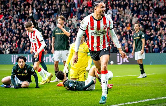 | Текущий евросезон получается провальным для клубов из Нидерландов. Посреди недели вслед за "Утрехтом" не смогли выйти в плей-офф четверо других участников Лиги чемпионов и Лиги Европы. Неудивительно, что после такого фиаско в таблице коэффициентов УЕФА Нидерланды уже пропустили вперёд Португалию, да и соседняя Бельгия теперь на подходе... Последним еврокубковым бойцом "оранжевых" остаётся АЗ, которому во второй половине февраля предстоят встречи с армянским "Ноа" в Лиге конференций. В очередном туре чемпионата Нидерландов всё внимание было приковано к статусному противостоянию ПСВ и "Фейеноорда". Обошлось без интриги - действующий чемпион отправил три безответных мяча в ворота "Фейе" уже к 17-й минуте игры. Отличная реакция команды Петера Боса на неудачи на международной арене! На минимальном расстоянии от "Фейеноорда" теперь находятся сразу две команды. Если "Аякс" умудрился разбазарить гандикап в два гола в выездном матче против "Эксельсиора", то НЕК подтвердил свои амбиции в гостях у АЗ. В пятёрке лидеров обосновалась "Спарта", которая нанесла поражение "Гронингену" благодаря дублю Мито. "Твенте" наступил на те же грабли, что и "Аякс", упустив два очка на поле андердога. Первую половину таблицы замыкает "Зволле", одержавший крупную победу над "Телстаром". Крепкие "Херенвен" и "Утрехт" расписали мировую, тогда как "Фортуна" уступила в Альмело. Наконец, "Гоу Эхед Иглс" в юбилейный десятый раз сыграл вничью, поделив очки с "Волендамом". Подробнее обо всех перипетиях 21-го тура Эредивизи читайте в традиционном обзоре на ФНК. ![]() Фото - Getty Images ПСВ уничтожил "Фейеноорд" В центральном матче тура, а может даже и всего второго круга, ПСВ соперничал с "Фейеноордом". На стадионе "Филипс" сошлись не только два лидера Эредивизи, но и два последних чемпиона Нидерландов. ПСВ и "Фейе" объединяла горечь от вылета из еврокубков. Правда, роттердамцам необходимо было только побеждать в Испании, в то время как эйндховенцам не хватило считанных минут для ничьей с немотивированной "Баварией", которая вывела бы ПСВ в плей-офф... В связи с эпидемией травм Робин ван Перси с первых минут отрядил в центр обороны гостей возвращенца Сент-Юсте, что не помогло сдержать шквал атак "крестьян". На исходе стартовой 10-минутки Дест заработал право на штрафной на правом фланге, и после радиоуправляемой подачи Вермана со стандарта Армандо Обиспо вогнал мяч в сетку головой. Центрбек ПСВ выскочил из-за спин Уэды и Таргаллина и в падении опередил запоздавшего с выходом Тимона Велленройтера! Затем Мауро Жуниор увенчал сольный проход по флангу навесом от лицевой, Велленройтер неудачно смахнул мяч на Гуса Тиля, и экс-спартаковец не преминул возможностью передать привет бывшему клубу. Далее несогласованные действия Таргаллина и Сент-Юсте привели к третьему голу ПСВ: Ваннер вклинился в свободный коридор и выкатил мяч на пустые ворота Исмаэлю Сайбари. Никогда прежде "Фейеноорд" не горел 0:3 к 17-й минуте матча Эредивизи! Спустя четверть часа Велленройтер кончиками пальцев дотянулся до мяча, помешав оформить дубль марокканцу. Ещё один шанс у ворот "Фейе" не реализовал Тиль. Во втором тайме дважды был близок к голу вышедший на замену Дриош. Раздавленные роттердамцы завершали игру вдесятером после нелепого удаления Гонсалу Боржеша. 3:0 - ПСВ деклассировал "Фейеноорд". "Эксельсиор" не покорился 