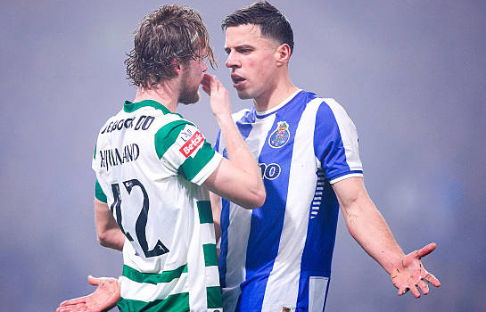 | Главным событием 21-го тура чемпионата Португалии стало противостояние лидера и чемпиона. "Порту" на своём поле принимал лиссабонский "Спортинг" и был очень близок к победе, но "львы" сумели уйти от поражения аж на 10-й компенсированной минуте. Таким образом, команда Франческо Фариоли упустила шанс оторваться от своего главного конкурента на 7 очков. Сейчас у "Порту" 56 баллов, а у "Спортинга" стало 52 очка. "Бенфика" под руководством Жозе Моуринью с трудом, но всё-таки дожала "Алверку". Лиссабонские "орлы" с 49 очками идут на третьем месте в турнирной таблице и возвращаются в чемпионскую гонку. "Брага", которая располагается на четвёртой строчке, разгромила "Риу Аве", а "Жил Висенте" одержал победу над "Морейренсе". ФНК подводит итоги 21-го тура в португальской примейре. ![]() Фото - Getty Images "Спортинг" не отпустил "Порту" в отрыв на 7 очков В центральном матче тура встречались главные фавориты в борьбе за чемпионство. Лидирующий "Порту" на стадионе "Драгау" принимал лиссабонский "Спортинг". Текущий лидер опережал действующего чемпиона на 4 очка. Оба тренера сыграли по схеме 4-2-3-1. У "Спортинга" в заявке на игре отсутствовал Матеус Рейс, который улетел в Москву для подписания контракта с ЦСКА. Начали команды очень осторожно. В первые полчаса не было создано ни одного опасного момента. Владение мячом разделилось строго 50 на 50, также как и удары по воротам – 1:1. Попаданий в створ не было. Цена ошибки была крайне высока, напряжение витало в воздухе. Никто не хотел рисковать и ошибаться. Шла абсолютно равная борьба двух высококлассных коллективов. В одном из эпизодов Пепе Акино ворвался в штрафную площадь "Спортинга", где упал после контакта с защитником "львов". Хозяева всей командой требовали назначить пенальти, но судейская бригада во главе с Луишем Годинью решила, что никакого нарушения правил не было. В концовке первого тайма напряжение достигло своего апогея, так что фанаты начали слишком агрессивно вести себя на трибунах. Судейская бригада вынуждена была на несколько минут прерывать поединок, но потом болельщики немного успокоились, и встреча возобновилась. На 38-й минуте "Порту" создал самый опасный момент в первом тайме, когда на ударной позиции оказался Алберту Кошта, но мяч после его классного выстрела прошёл рядом со штангой. К первому тайму было добавлено семь минут, за которые футболисты успели схлопотать пару "горчичников". На перерыв оппоненты ушли с нулями на табло. На второй тайм главный тренер "Порту" Франческо Фариоли вывел свою команду с одной заменой. Так из-за травмы покинул поле лучший бомбардир команды Самуэль Омородион, а вместо него вошёл в игру Дениз Гюль. "Спортинг" в стартовый отрезок второй половины поединка действовал поактивнее, лиссабонские "львы" исполнили пару угловых, но настоящей угрозы у ворот "драконов" не было. У "Порту" так вообще в атаке ничего не получалось. Тогда Фариоли на 63-й минуте произвёл аж тройную замену, одна из которых случилась по травму. Рулевой "Спортинга" Руй Боржеш молчал. Упорная борьба в центре поля продолжалась. Развязка наступила в заключительный отрезок поединка. На 76-й минуте Гуль нанёс опасный удар по воротам, мяч попал в защитника "Спортинга", а первым на добивание подоспел вышедший на замену дебютант "драконов" Секо Фофана. Опытный ивуариец и распечатал Руя Силву. Футболисты "Спортинга" тут же начали