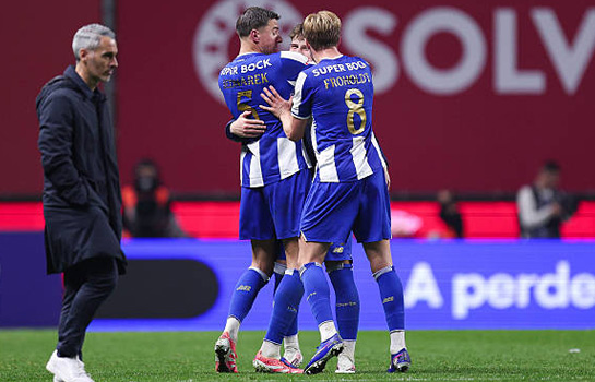 | В 27-м туре чемпионата Португалии фавориты подтвердили свой статус. Лидирующий в турнирной таблице "Порту" на выезде одолел очень сильную "Брагу" со счётом 2:1, набрал 81 очка и сделал весомый шаг к чемпионству. На 7 баллов отстаёт лиссабонский "Спортинг", футболисты которого справились с "Алверной". У "львов" 65 баллов и матч в запасе. "Бенфика" Жозе Моуринью разгромила дома "Гимарайнш", отправив в его ворота три безответных мяча. У лиссабонских "орлов" 65 баллов и третья строчка. ФНК подводит итоги основных событий в португальской примейре. ![]() Фото - Getty Images "Порту" на характере обыграл "Брагу" В центральном матче тура лицом к лицу сошлись "Брага" и "Порту". Игра разделилась на два контрастных отрезка. В первом тайме обе команды предпочли осторожный футбол с акцентом на плотность в центре поля. "Брага" успешно сдерживала атаки гостей, используя компактный блок в схеме 4-3-3. Во второй половине встречи темп вырос. "Порту" перешёл на более агрессивный высокий прессинг, что вынудило оборону хозяев ошибаться под давлением. Несмотря на то, что "Брага" доминировала по владению мячом в некоторых отрезках, "драконы" оказались эффективнее в реализации созданных моментов. Все голы были забиты во втором тайме. "Брага" на 54-й минуте провела резкий выпад, который завершился нарушением в штрафной площади "Порту". Судейская бригада назначила пенальти. Родриго Саласар подошёл к "точке" и хладнокровно развёл мяч и вратаря по разным углам – 1:0! Пенальти стал следствием возросшей агрессии "Браги" на флангах сразу после перерыва, к чему защита "драконов" оказалась временно не готова. Пропустив, "Порту" включил максимальный прессинг. Ответный мяч пришёл с правого фланга: после затяжной осады и серии рикошетов Оскар Петушевски нашёл пасом вышедшего на замену Виллиама Гомеса, который точным ударом восстановил равновесие на табло, распечатав ворота Лукаша Горничека – 1:1! Следующий гол назревал. "Порту" запер "Брагу" на её трети поля, заставив защитников совершать позиционные ошибки из-за высокой интенсивности движения. Победная точка была поставлена в классическом стиле контратак "Порту". Пока "Брага" пыталась вернуть лидерство, гости поймали их на контрвыпаде. Статусный Секо Фофана ворвался в свободную зону и точным ударом после передачи одного из лидеров "Порту" Виктора Фрохольдта завершил голевую комбинацию – 1:2! "Порту" проявил чемпионский характер, перевернув ход неудачно складывавшегося матча. "Брага" смотрелась достойно, но не смогла удержать преимущество под колоссальным давлением лидера чемпионата. В турнирной таблице у "драконов" 72 очка и первое место, а у "оружейников" 46 баллов и четвёртая позиция. Разгром от лиссабонского "Спортинга" Лиссабонский "Спортинг" в гостях играл против "Алверки". Руй Боржеш выставил смешанный состав, используя привычную схему 3-4-3. Основной акцент "львами" был сделан на контроль мяча и использование ширины поля через латералей. "Алверка" оборонялась низким блоком 5-4-1, пытаясь максимально насытить штрафную площадь и ловить лиссабонцев на контратаках. Счёт на 22-й минуте открыл Педру Гонсалвеш. В самом начале второй половины поединка "львы" забили второй свой гол, автором которого стал Луис Хавьер Суарес, а голевую передачу оформил Хидэмаса Морита. Кстати, отметим, что у лиссабонских "львов" по ходу первого тайма случилась вынужденная за