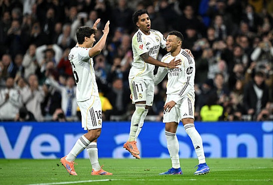 «Реал» одержал в чемпионате Испании вторую победу подряд и в поединке с «Севильей» сохранил свои ворота «на замке», однако игра «сливочных» в обороне всё равно вызвала большие вопросы. Команды выдали резвое начало, создав несколько моментов за десять минут, но затем игра на некоторое время успокоилась. У «сливочных» очень хотел отличиться Килиан Мбаппе, жаждущий побить рекорд Криштиану Роналду по забитым мячам за календарный год, но у француза в первом тайме мало что получалось. Тем не менее, ещё до перерыва «сливочным» удалось отличиться – подачу Родриго со стандарта замкнул Джуд Беллингем. Перед самым перерывом в падении через себя пробил Алексис Санчес, но в створ он не попал. В начале второго тайма, как и первого, команды выдали активный отрезок. Но у Мбаппе никак не получалось отличиться, как и у Исаака Ромеро с Санчесом. Тибо Куртуа выручал «сливочных», у гостей же надёжно действовал в «рамке» Одиссеас Влаходимос. На исходе часа игры после удара Мбаппе он перевёл мяч в перекладину. В середине второго тайма «Севилья» была ближе к голу, но Куртуа выиграл дуэль у Ромеро, а затем Люсьен Агуме пробил рядом со штангой. А следом гостей подвёл Маркао, схлопотавший вторую жёлтую карточку. В меньшинстве нервионцам пришлось тяжелее. Вскоре Влаходимос снова перевёл мяч в перекладину, на сей раз после удара Родриго. На 86-й минуте многое в этом матче стало ясно. Родриго заработал пенальти, и его реализовал Мбаппе. Килиан сумел повторить рекорд Роналду по голам за календарный год (59), но не побил его. В дальнейшем гости могли «размочить» счёт, однако Пеке Фернандес не попал в створ, а выстрел Альфона Гонсалеса парировал Куртуа. «Реал» набрал важные три очка и на данный момент сократил своё отставание от «Барселоны» до одного балла. ![]() Фото - Getty Images Предыстория. «Реал» с начала ноября не отличается стабильностью. В последних десяти матчах во всех турнирах «сливочные» одержали лишь четыре победы. Три дня назад «Королевский клуб» в Кубке Испании неожиданно дважды пропустил от скромной «Талаверы», но всё равно победил (3:2). В Примере «Реал» растерял свой пятиочковый отрыв от «Барселоны» и уже сам отстаёт от «сине-гранатовых» на четыре балла. Это расстояние могло увеличиться неделю назад, но команда Хаби Алонсо вырвала победу над «Алавесом» (2:1). В обороне у «Реала» есть очевидные проблемы. Даниэль Карвахаль, Эдер Милитао и Трент Александер-Арнолд травмированы. Кроме того, мадридцам не могут помочь Альваро Каррерас, Федерико Вальверде, Браим Диас и Эндрик. Спадом «Королевского клуба» рассчитывала воспользоваться «Севилья». Нервионцы три дня назад вылетели из Кубка Испании после поражения от «Алавеса» (0:1) и жаждали реабилитироваться перед своими болельщиками. В Примере команда Матиаса Альмейды обосновалась в середине таблицы, но до зоны еврокубков ей рукой подать, так что «красно-белым» вполне по силам выправить ситуацию в чемпионате. Другое дело, что на «Сантьяго Бернабеу» гостям сложно было рассчитывать на положительный результат. В последний раз «Севилья» обыгрывала «Реал» на выезде семнадцать лет назад. Нервионцы много забивают и столько же пропускают в текущем чемпионате, так что были все основания ожидать результативного поединка. Кадровые проблемы у гостей также имелись — у них отсутствовали Сесар Аспиликуэта, Акор Адамс, Танги 
