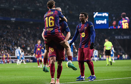 В противостоянии каталонских команд победную серию продлить могла только одна – и это сделала «Барселона», которая продолжает уверенно лидировать в чемпионате Испании. Хотя далось это все непросто. «Эспаньол» навязывал равную борьбу «блаугране» и местами даже превосходил ее в остроте. Гости как будто долго раскачивались и в основном увлекались контролем мяча и территории, не особо создавая опасные моменты. Чтобы исправить как-то положение, «Барселона» стала проводить замены, которые оживили ее игру во втором тайме. «Эспаньол» по-прежнему хорошо огрызался, однако «Барселона» справилась, выстояла и добилась своего: вышедшие на замену Фермин Лопес, Ольмо и Левандовски сделали два гола за пять минут, и они продлили победную серию «Барселоны». ![]() Фото - Getty Images Предыстория. К очному противостоянию две каталонские команды подходят в самой лучшей форме среди всех клубов Ла Лиги – после серии побед. «Эспаньол» проиграл в Кубке Испании в начале декабря, но в чемпионате у него серия из пяти триумфов подряд: над «Севильей» (2:1), «Сельтой» (1:0), «Райо Вальекано» (1:0), «Хетафе» (1:0) и «Атлетиком» (2:1). А «Барселона» не знает поражений в семи матчах во всех турнирах. В матче чемпионата перед паузой она обыграла «Вильярреал» (2:0), ранее был успех в игре Кубка Испании с «Гвадалахарой» (2:0), победа над «Осасуной» (2:0) в Ла Лиге и над «Айнтрахтом» (2:1) в Лиге чемпионов. В предыдущих трех подряд поединках с «Эспаньолом» «Барселона» побеждала. В прошлом сезоне это были победы со сетом 3:1 и 2:0. Последняя победа «попугаев» над «блауграной» случилась в Кубке Испании в 2018 году. Что касается потерь, то у хозяев отсутствует Пикель, а у гостей – Гави, Кристенсен. Ход матча. Матч начался с активностей «Барселоны». Первый же выпад завершился прострелом в центр штрафной, но Ферран не смог нанести акцентированный удар. «Эспаньол» в ответ немного покатал мяч и провел неплохой укол, Долан вышел на перспективную позицию, сместившись с фланга к центру, однако пробил в соперника. Хозяева смогли на несколько минут стабилизировать игру, взять территорию под свой контроль, что выглядело лишь как эпизод, но могло принести плоды. Например, первый же угловой закончился опасным моментом. Кабрера откликнулся на подачу в центре штрафной и пробил. После рикошета мяч пролетел рядом со штангой. Повторные корнеры оказались не такими опасными. На этом отрезок активности «Эспаньола» завершился. «Блауграна» перехватила мяч и стала переводить мяч с фланга на фланг, меняя акцент, однако взаимодействие на острие не получалось, навесы и прострелы адресатов не достигали. Кунде вышел на перспективную позицию справа, но прострел или удар перехватил Дмитрович. Он же забрал намертво и подачу Ямаля. Другие попытки выносились защитниками. Вроде бы освоилась «Барселона» в размеренном давлении, как «Эспаньол» показал, на что рассчитывает в этом противостоянии. Он устроил стремительную контратаку. Фернандеса отправили в прорыв проникающим пасом, он удрал от защитников, но пока прицеливался, Кубарси нагнал его и помешал пробить акцентированно, так что Хоан Гарсия справился уверенно. «Барселону» этот всплеск никак не завел – она снова взялась просто контролировать мяч, никуда не торопясь и не создавая критических проблем обороне «Эспаньола». Пока за дело не взялся Ямаль. Ламин справа в своем фирм