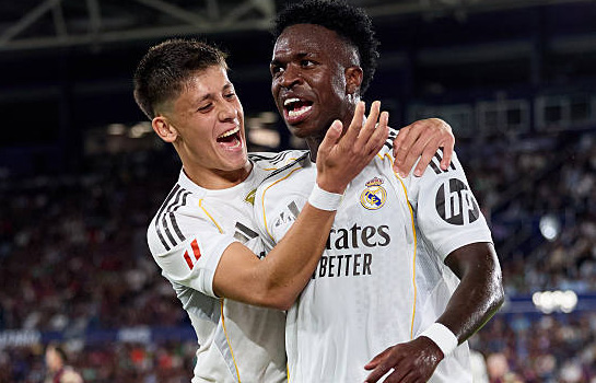 | 	 К победам «Реала» и «Барселоны» в Примере, думается, все уже привыкли. Если «сливочные» не потеряют очки в мадридском дерби, которое должно состояться в эту субботу, то тогда даже непонятно, кто сможет остановить команду Хаби Алонсо до эль класико. В этом туре был разгромлен «Леванте» (4:1). Аналогично и у сине-гранатовых: «Овьедо» вполне мог устроиться на разгром, если бы не ошибка Хоана Гарсии – 3:1. «Реал Сосьедад», с которым каталонцам играть в воскресенье, обошелся без Захаряна и... выиграл. Впервые в сезоне! Пострадала «Мальорка» (1:0), чьи позиции выглядят так же слабо, как и у «Жироны», но подопечные Мичела ухитрились скатать ничью против «Атлетика» (1:1). Еще одна команда из Страны басков отобрала очки у «Хетафе» в гостях (1:1), а оставшийся каталонский клуб в лице «Эспаньола» спасся дома против «Валенсии» (2:2). Феерический поединок с хет-триком Хулиана Альвареса сыграл «Атлетико» в малом мадридском дерби против «Райо Вальекано» (3:2), тогда как «Эльче» чуть не потерпел первое поражение в Памплоне, но все же сравнял против «Осасуны» (1:1). «Вильярреал» держится в тройке, потому что в гостях переиграл «Севилью» – 2:1. «Сельта» и «Бетис» еще в конце августа сыграли вничью (1:1), потому что у «огурцов» вчера было выступление в Лиге Европы.  ![]() Фото - Getty Images «Реал» первым из грандов вступал в бой. Хаби Алонсо идет на рекорд, поэтому каждый матч уже рассматривается под микроскопом, но визит в Валенсию к «Леванте» стал, скорее, легкой прогулкой. Первая треть тайма, правда, осталась за «лягушками», вот только Ромеро и де ла Фуэнте свои шансы не использовали. «Сливочные» выжидали, а затем за 10 минут решили исход встречи. Сначала Винисиус Жуниор в середине тайма ударом внешней стороной стопы с правого края штрафной отправил по дуге снаряд под дальнюю стойку, а затем бразилец ассистировал Мастантуоно, который выбежал почти один на один и с того же места поразил ближнюю «девятку» ворот. После перерыва надежду хозяевам дал Эйонг, переправивший мяч с нескольких сантиметров в сетку после ошибки Куртуа, но Килиан Мбаппе упрочил статус лучшего бомбардира лиги, отличившись дважды. На 64-й минуте француз исполнил пенальти, заработанный им же, а еще через 3 минуты реализовал выход один на один после передачи Гюлера. Деморализованный «Леванте» сдался досрочно. «Райо Вальекано» отнял очки у «Барселоны» и был близок к этому на «Метрополитано», но не сложилось. В ударе был самый критикуемый игрок «матрасников» на старте сезона – Хулиан Альварес. Именно аргентинский страйкер открыл счет в первой трети тайма, убежав на левую штангу под перевод от Льоренте справа и замкнув в касание со своей левой. Гости выдержали и в компенсированное время отыгрались. Чаваррия сочно выстрелил в левую «девятку» метров с 30-35. Красотища! В тайме втором опасными ударами обменялись Палазон и Нико Гонсалес, но забили не они. Альваро Гарсия убежал один на один с Облаком, обыграл вратаря и забил в пустые. Радовались «пчелы» ровно 3 минуты, потому что молчавший Альварес сначала оформил дубль, когда добил с полуметра снаряд в сетку после сейва Батальи, а затем и хет-трик за две минуты до конца основного времени. В этот раз аргентинец нанес неотразимый удар с дуги штрафной в правую «девятку». Ответить на это у «Райо» уже не получилось. Ничьи в компенсированное время для «Эспаньола» и «Эльче». Без